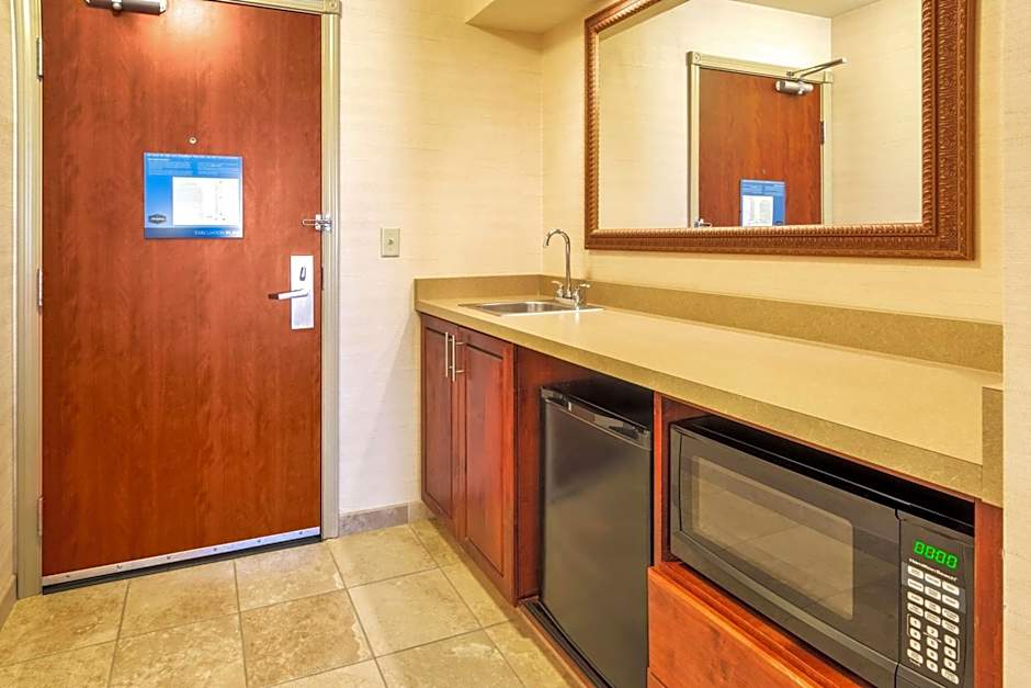 This spacious suite features a separate seating area with a sofa bed, microwave and refrigerator.